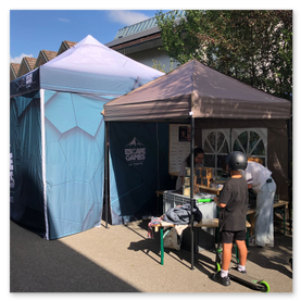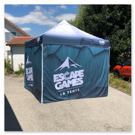 L’Escape Game la Tente et une activité qui se joue de 2 à 5 joueurs dans un espace de 3 par 3 mètres. Les énigmes sont disposées sur les différentes parois.