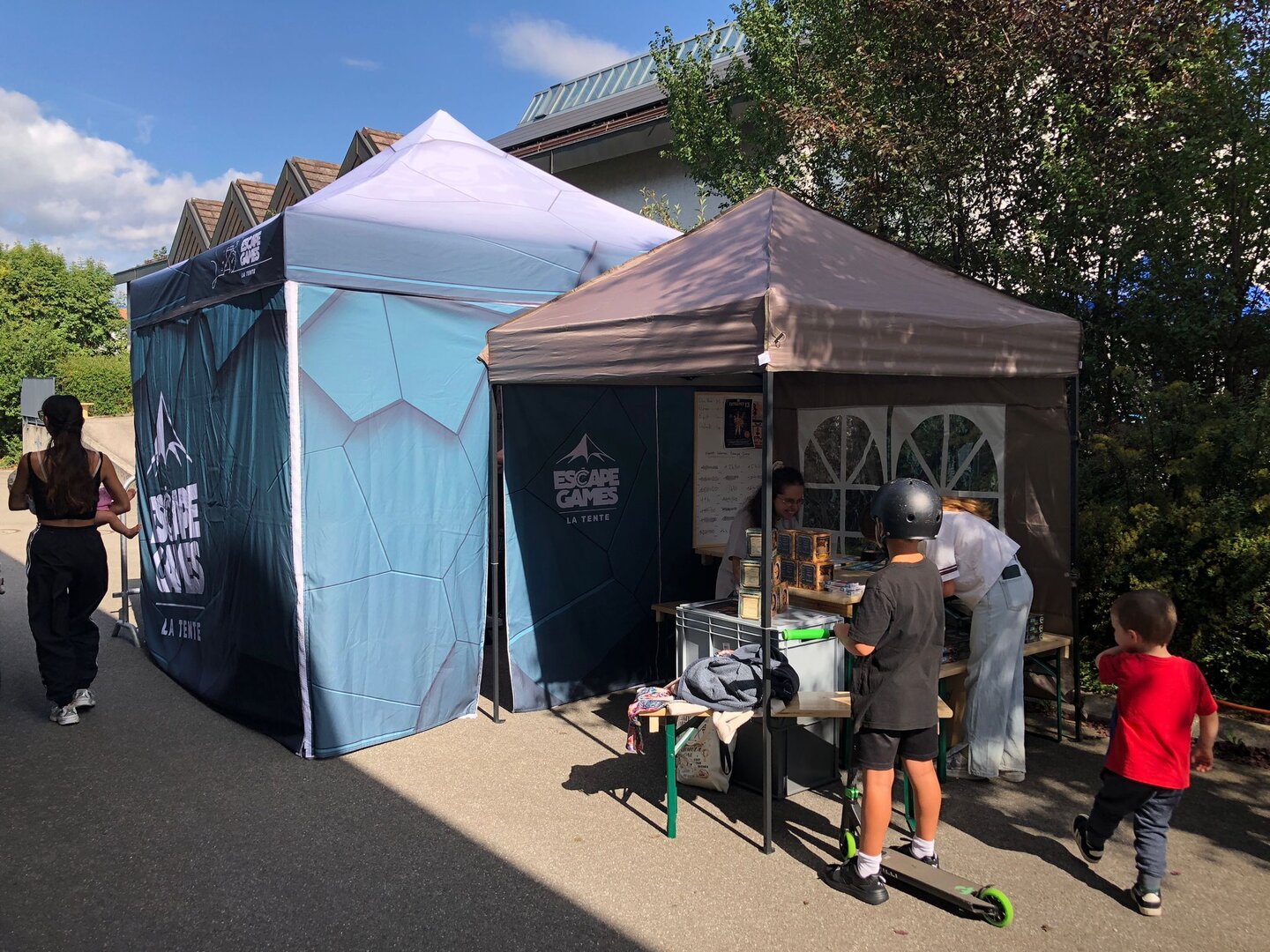 A la différence de nos établissements à Cossonay et Orbe, l’Escape la Tente peut se déployer dans de nombreux endroits en extérieur comme en intérieur.